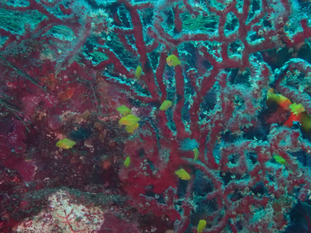 キンギョハナダイ・アカオビハナダイ・アカハタ・チョウチョウウオ・キビナゴ・ソラスズメダイ・アオリイカ・スズメダイ・ハナミノカサゴ・サツマカサゴ・トラウツボ・ベニキヌヅツミ・タカベ・ニザダイ・ナンヨウツバメウオ・オキナワベニハゼ・ガラスハゼ・クマノミyg・シコクスズメダイ・コガネスズメダイyg