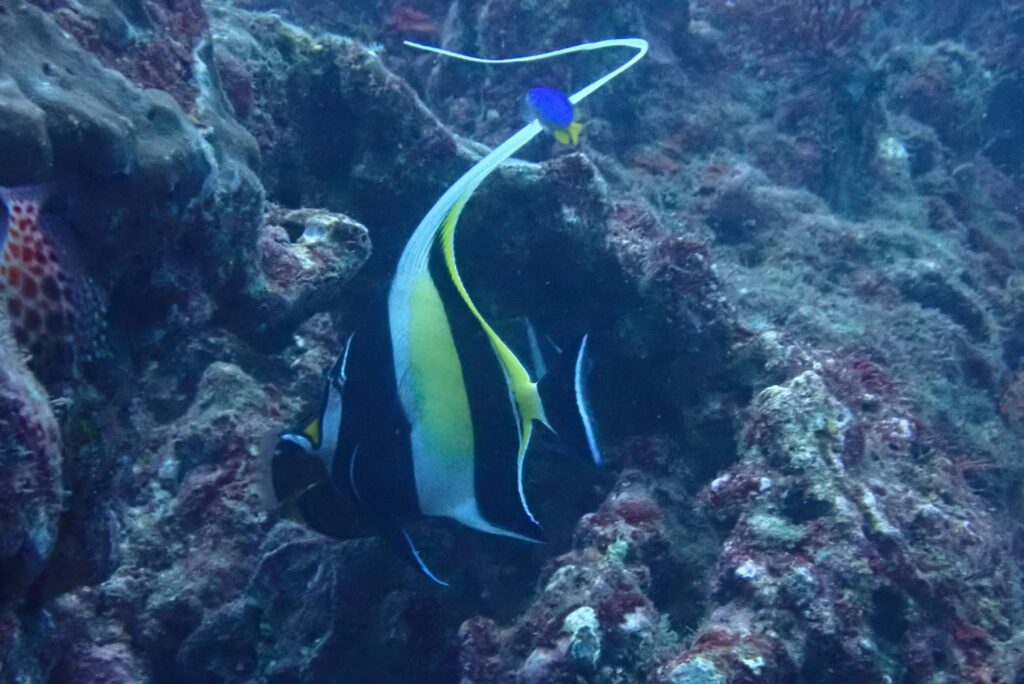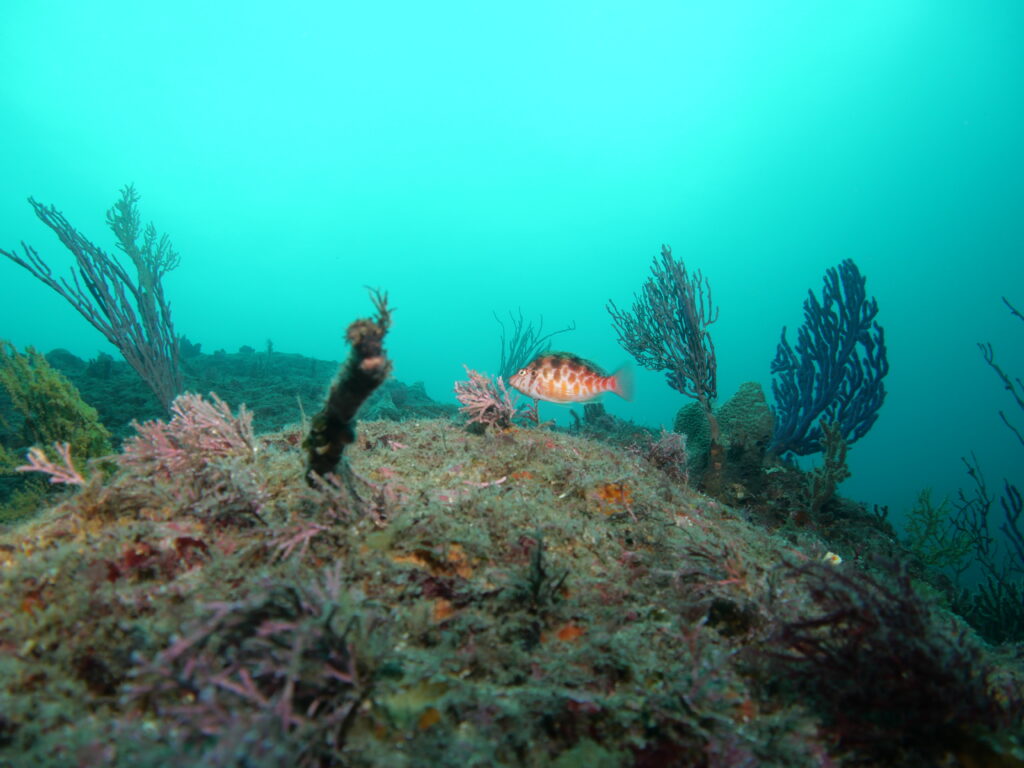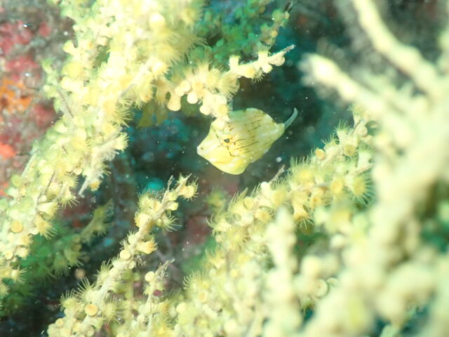 雲が多めで、水中も少し暗い感じでしたが、水温25℃とまだまだウェットで快適に潜れました。