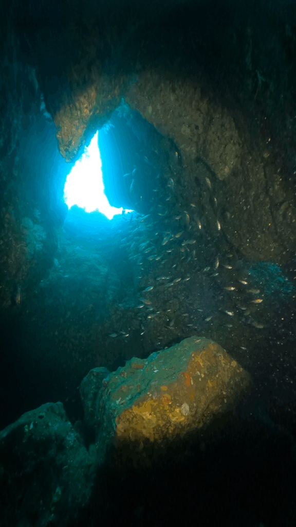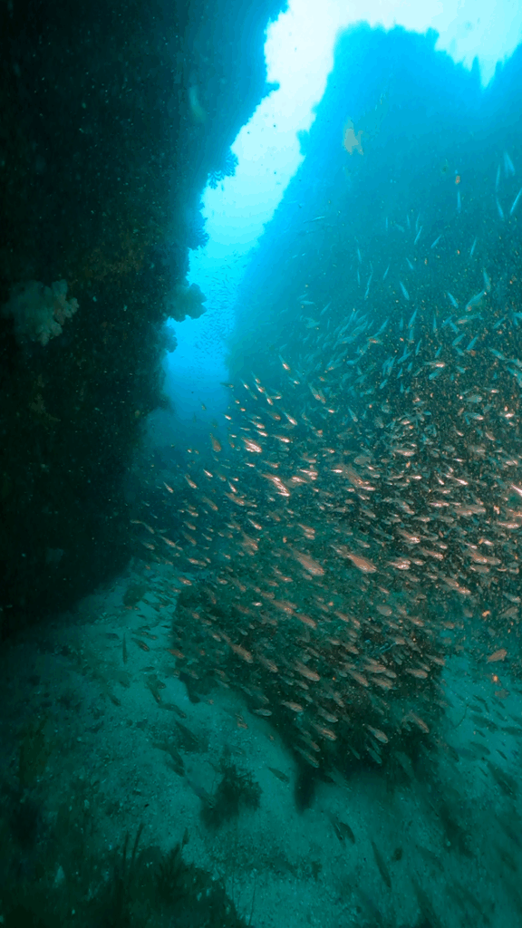 船自体は小さいけれど、魚がモリモリ群れて、ソフトコーラルがキレイで映え映えです。