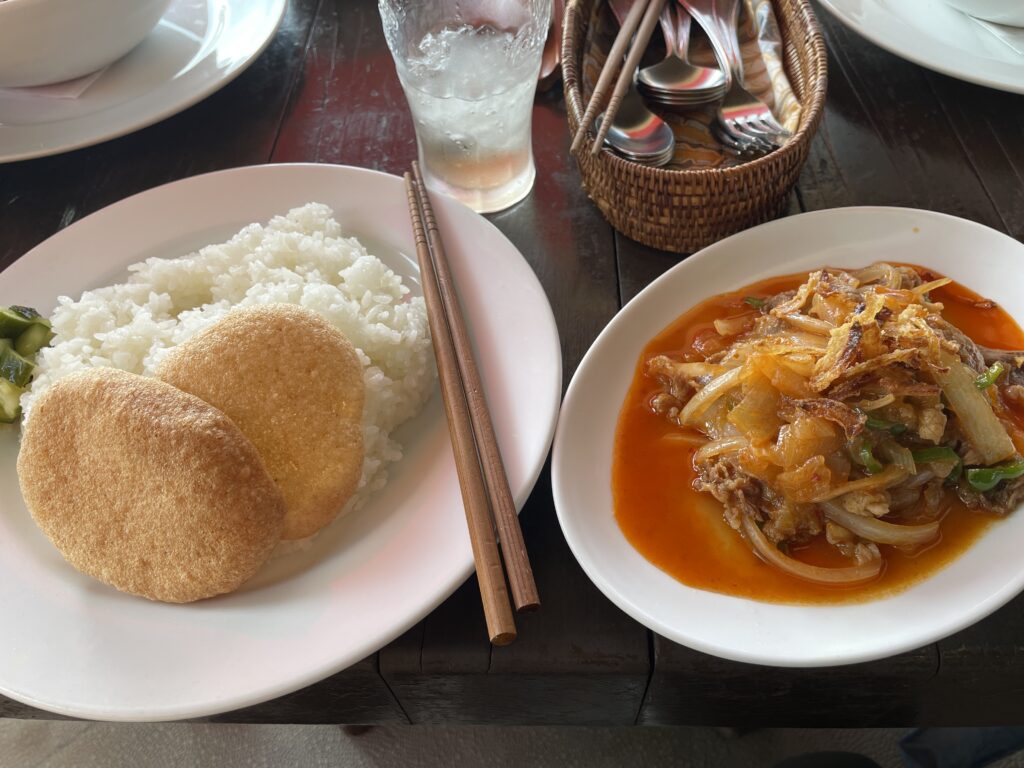 右の写真は、『牛肉のプラドール炒め』ほんのり辛くておいしーいっ‼️