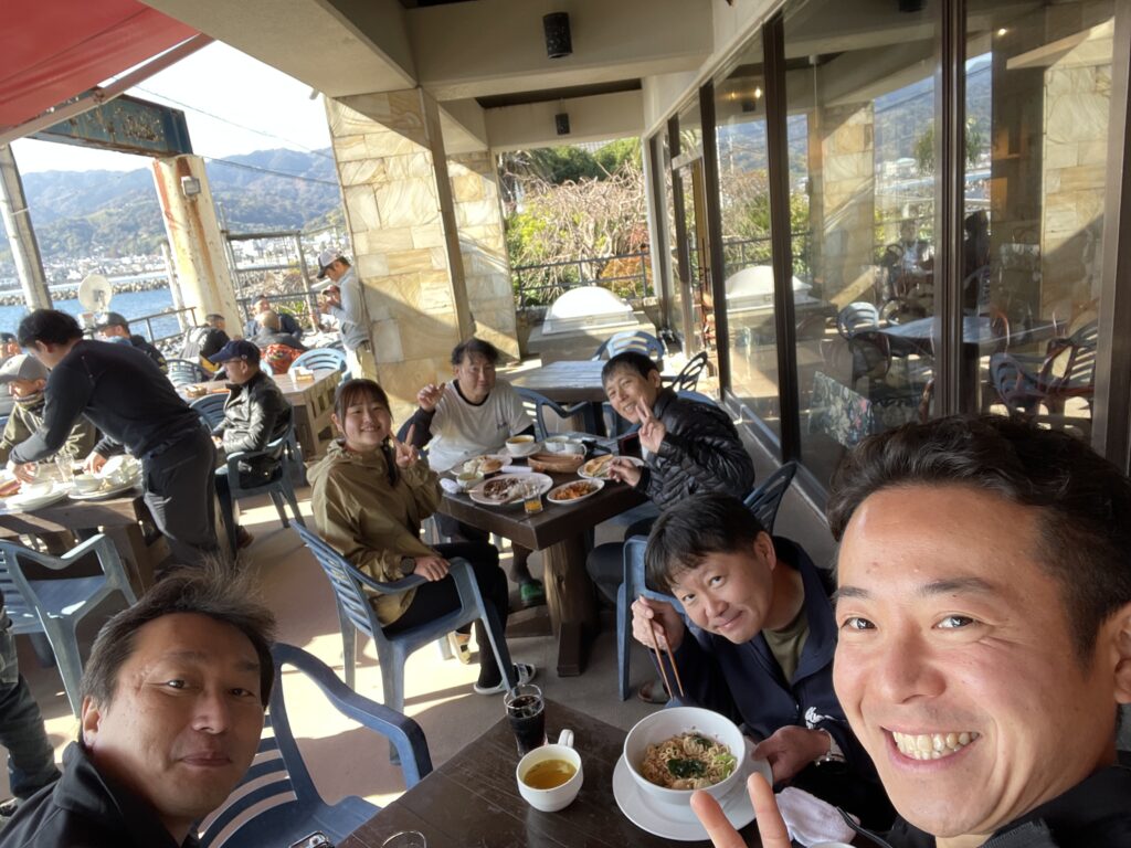 この時もマンボウの話で持ちきり‼️実は、写真の6人中3人しかマンボウを見れてません😳