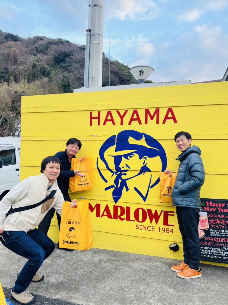 葉山名物のマーローでプリン買って、お年賀用のお菓子を買って…