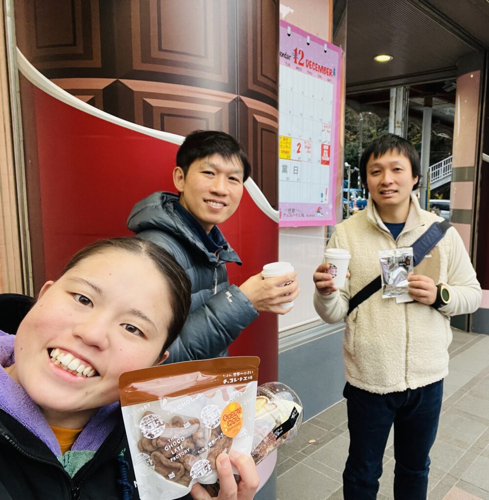 次はチョコレート工場でお菓子とホットチョコレート(チョコレート屋さんのホットチョコレートなんて絶対美味しいに決まってる)を買って…