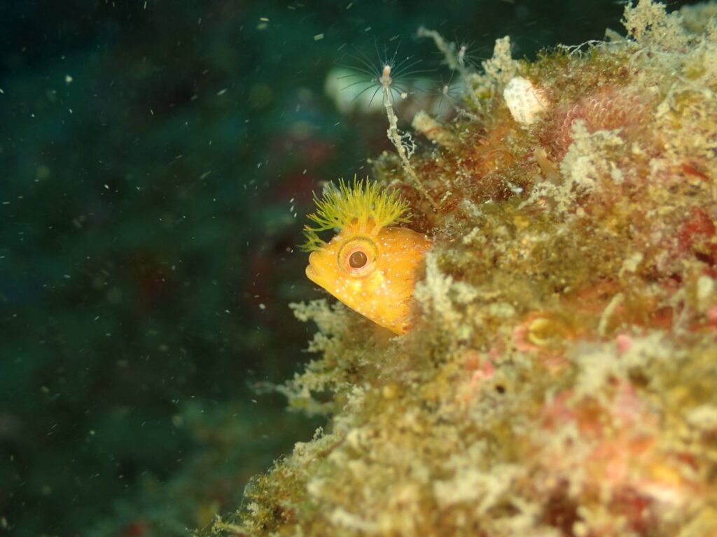 ガラスハゼ・マツカサウオの群・オトヒメエビ・コケギンポ・アライソコケギンポ・フタホシニジギンポ・シミズイソコケギンポ・サフランイロウミウシ・アオウミウシ・サラサウミウシ・ヒロウミウシ・ミツイラメリウミウシ・タツノイトコ・アオサハギ・タコ・ハコフグ・イタチウオ・ゴンズイ玉・ニシキフウライウオ・アオリイカの群れ・ミツボシクロスズメダイ・イソギンチャクエビ・イシダイ・ガンガゼエビ・アラサキガンガゼ・アカオビハナダイ・ミノカサゴ