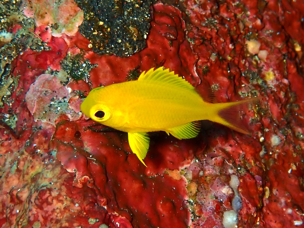 いつもいる黄色いかわい子ちゃん。普通種だけど、ちっこいヤツほどお目目がデカくて可愛いのよね。