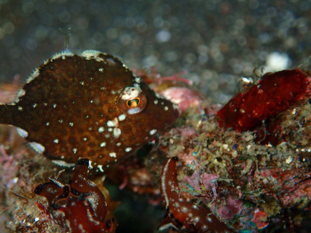 いろんなウミウシや五円玉サイズのかわいいマツカサウオ、優雅に泳ぐヒラタエイなどなどが♡