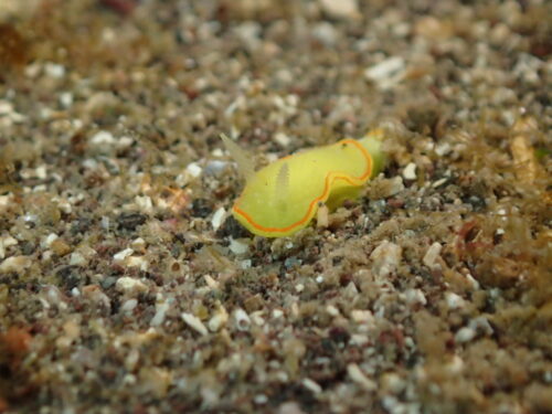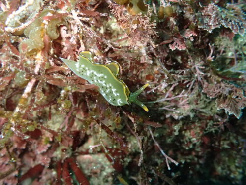 クロヘリアメフラシ・ミツイラメリウミウシ(黄)・シロハナガサウミウシ・アオウミウシ・シロウミウシ・シラユキウミウシ・ベッコウヒカリウミウシ・マツカサウオ・ホソウミヤッコ・クロイシモチ・ホウボウyg・アオサハギ・アミメハギ・ヒラタエイ・ヒメイカ・サビハゼ・ニジギンポ・ダテハゼ・ニシキベラ・タコベラyg・イラ・オキゴンベ・ミノカサゴyg・イソギンチャクモエビ・オトヒメエビ・キビナゴ(シャワー)
