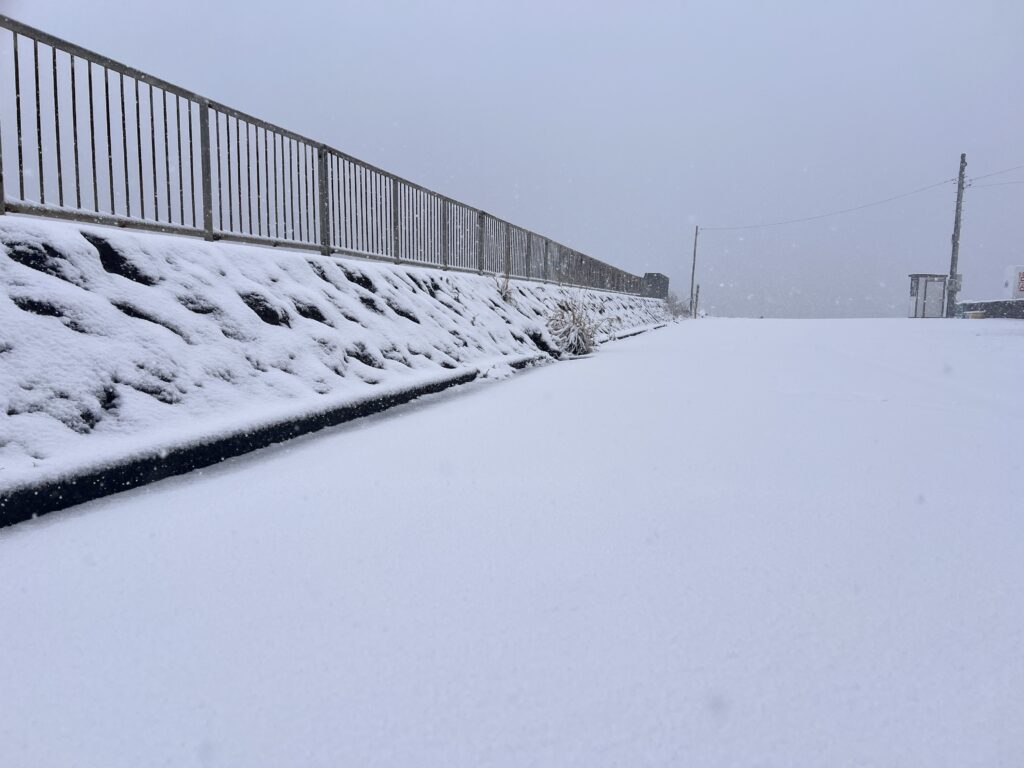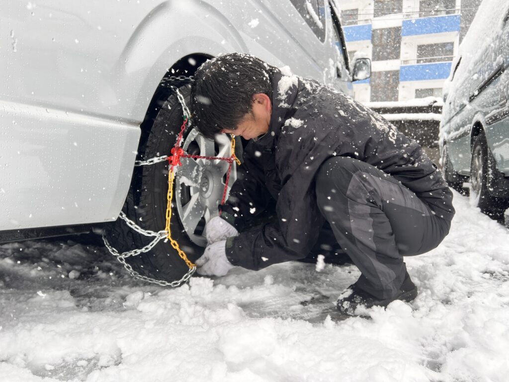 帰りは安全のため、チェーンをつけて、真っ白な道を進んでいきました。