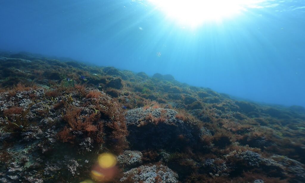 安全停止している時間は、ブルーなシーにサンのライトで海藻キラキラ。