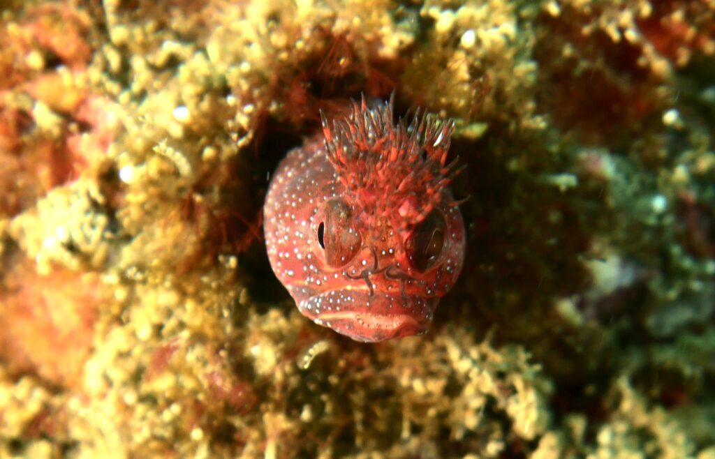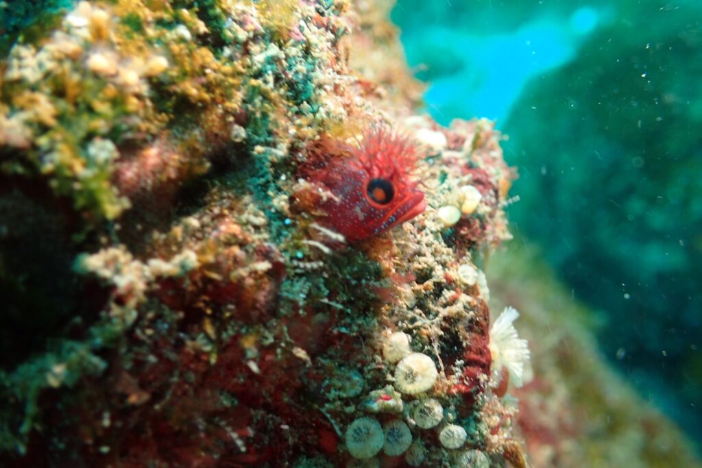 穴から顔を出すアライソコケギンポや鮮やかなオレンジ色のオキゴンベ、